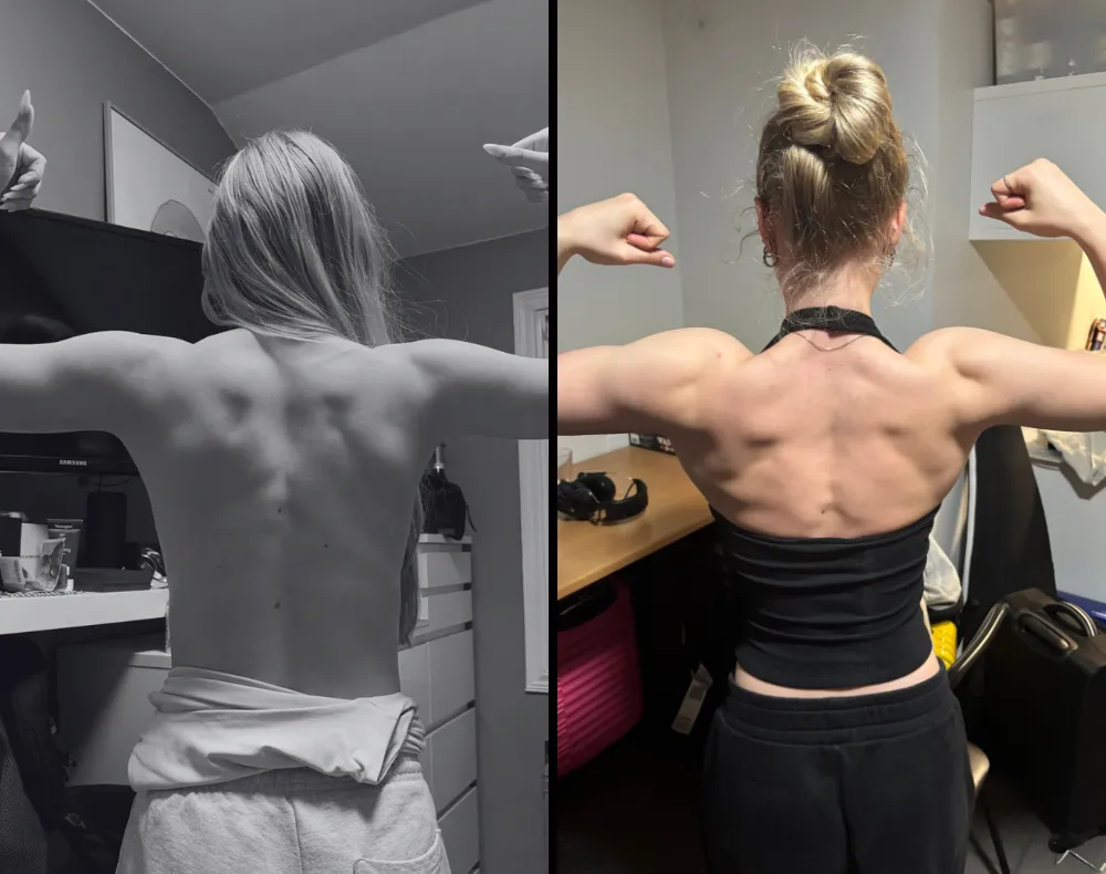 "I was training 6x a week with no structure, self-critical about my body. Built a sustainable approach, gained noticeable muscle (especially glutes), and gained the confidence to move abroad to study medicine."